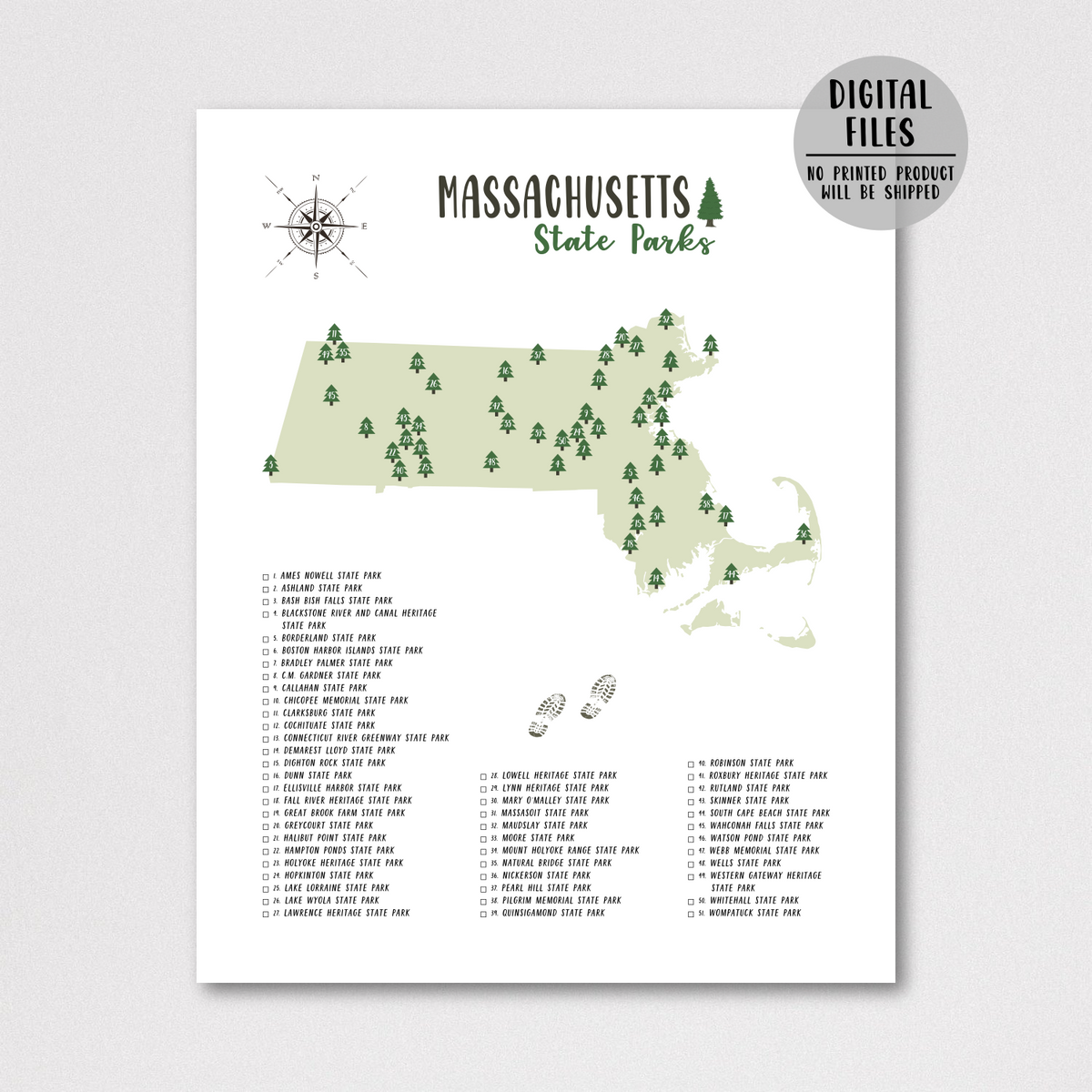 Massachusetts State Parks Map | Massachusetts Map | Gift For
